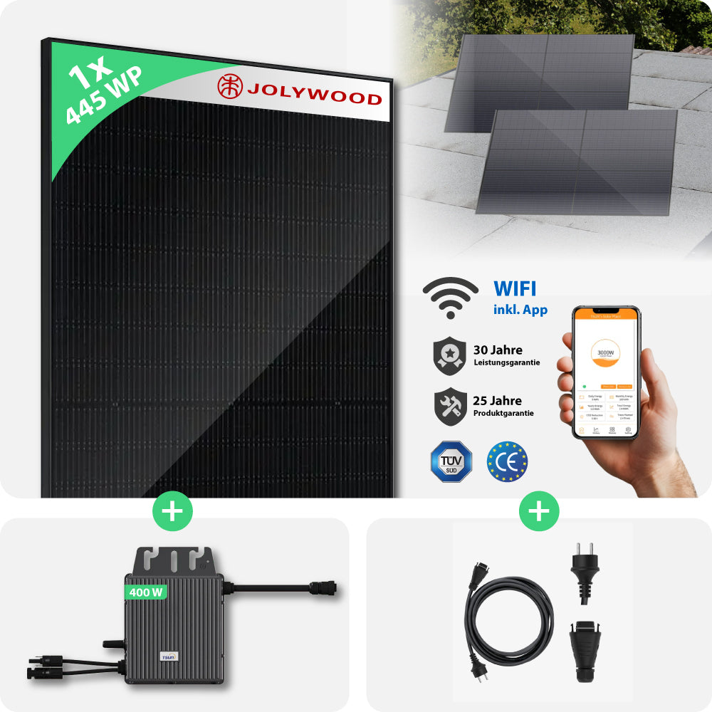Dieses Komplettset umfasst ein hochwertiges Glas-Glas-Solarmodul, das durch seine robuste Bauweise selbst extremen Wetterbedingungen standhält.