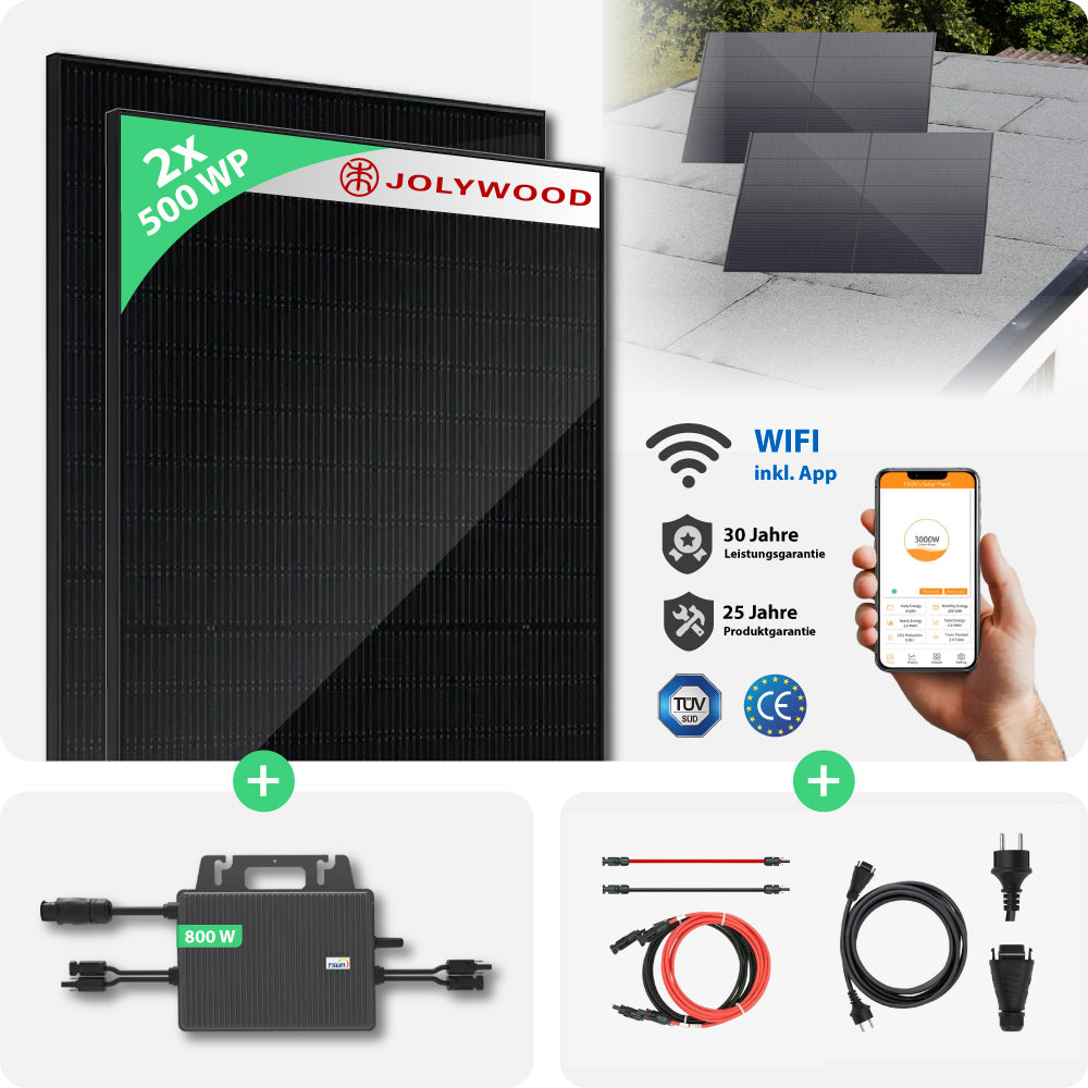 Balkonkraftwerk Flachdach | 2er Komplettset | Bifaziale Glas-Glas Solarmodule | 1.000 WP