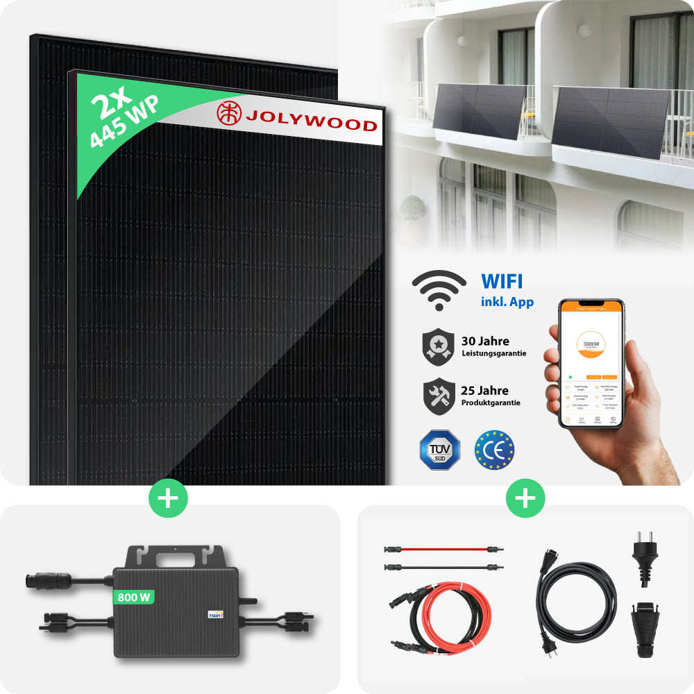 Dieses Komplettset umfasst zwei hochwertige Glas-Glas-Solarmodule, die durch ihre robuste Bauweise selbst extremen Wetterbedingungen standhalten.