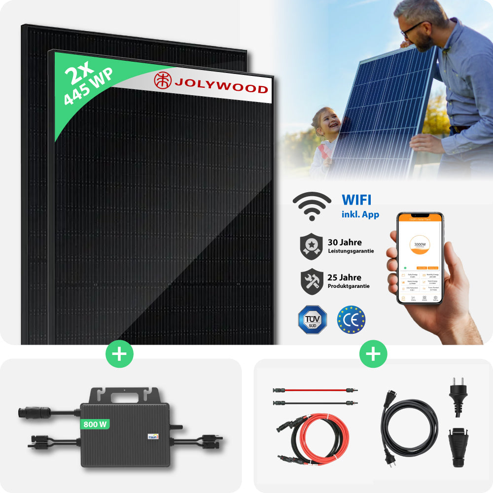 Dieses Komplettset umfasst zwei hochwertige Glas-Glas-Solarmodule, die durch ihre robuste Bauweise selbst extremen Wetterbedingungen standhalten.