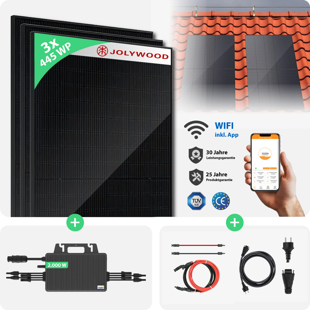 Dieses Komplettset umfasst drei hochwertige Glas-Glas-Solarmodule, die durch ihre robuste Bauweise selbst extremen Wetterbedingungen standhalten.