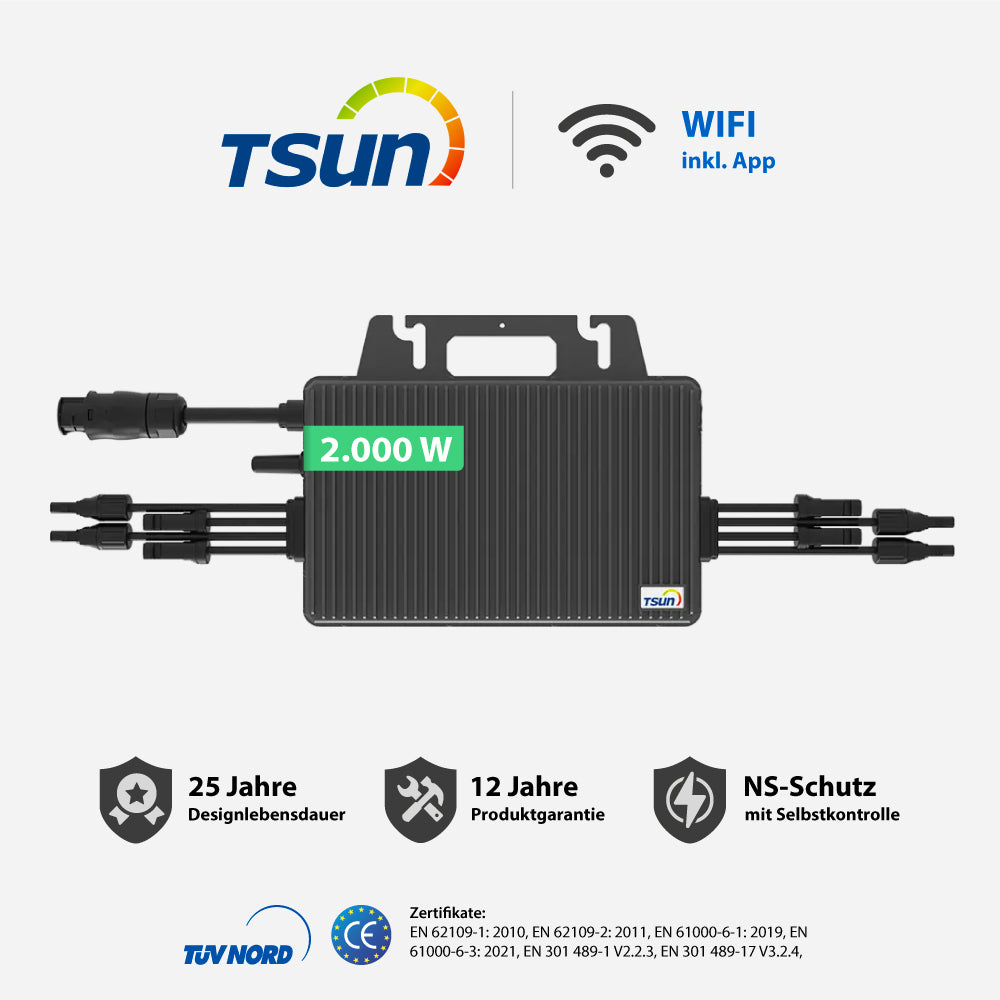 Integriertes WLAN für Überwachung des Energieverbrauchs und Firmware-Updates über die "TSUN Smart"-App