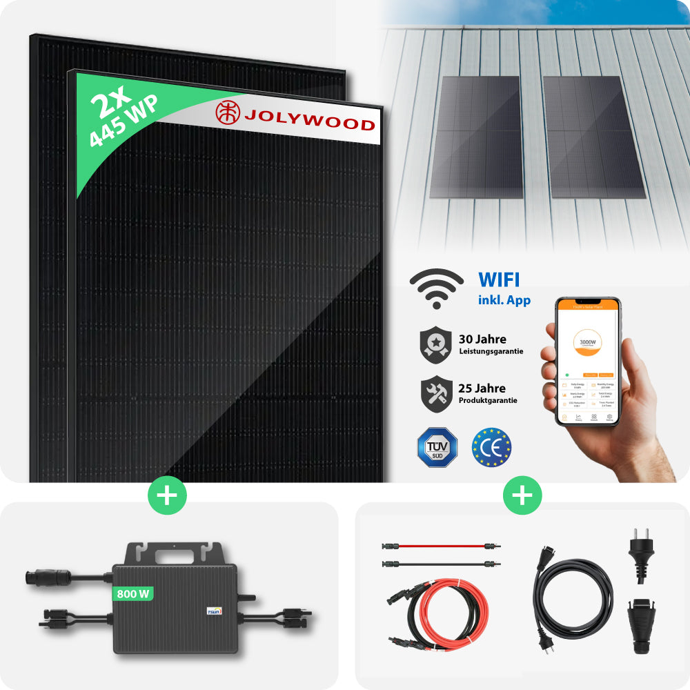 Dieses Komplettset umfasst zwei hochwertige Glas-Glas-Solarmodule, die durch ihre robuste Bauweise selbst extremen Wetterbedingungen standhalten.