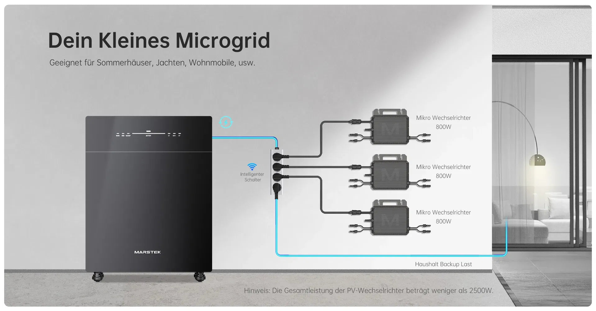 • 2.500 W Notstrom – volle Versorgung bei Ausfall