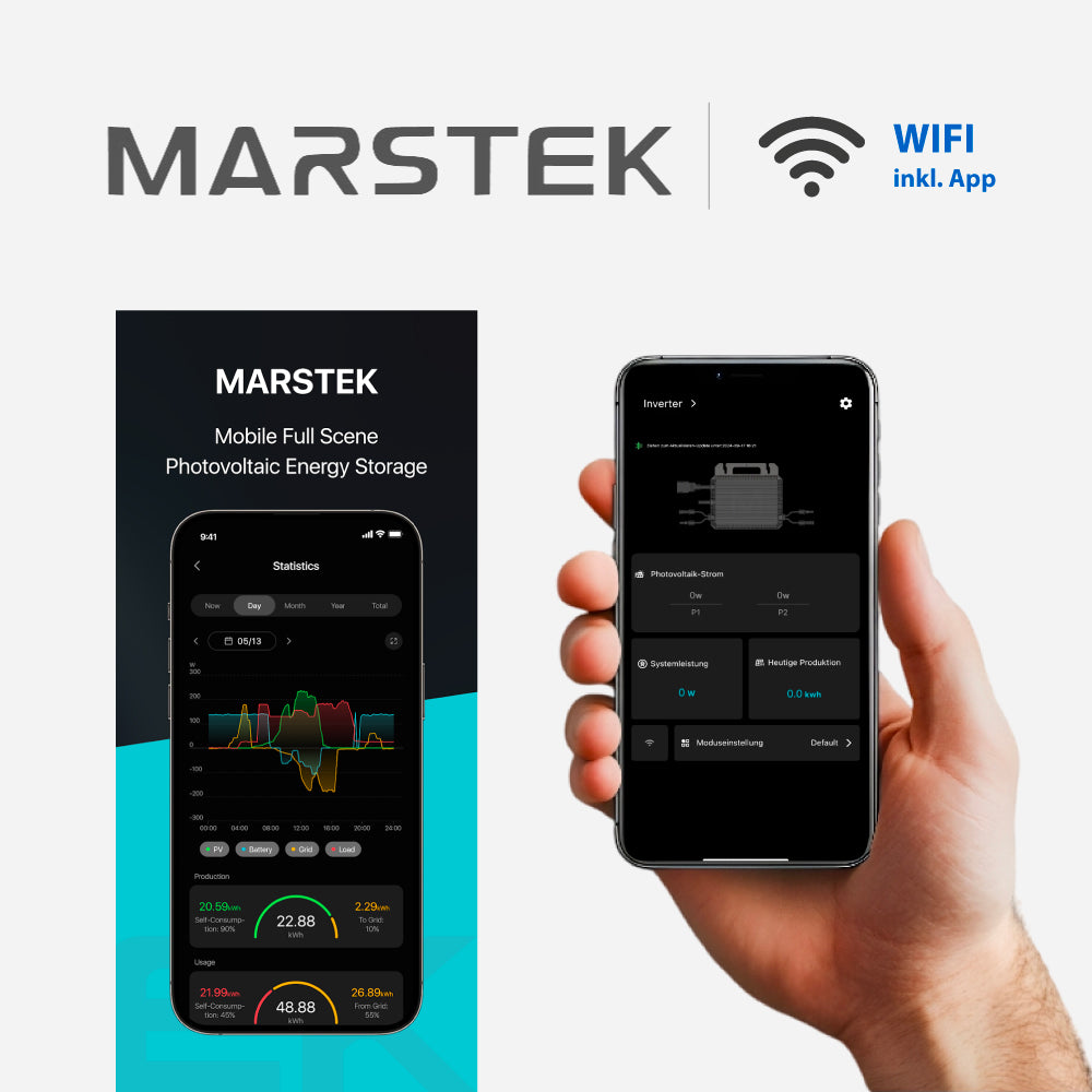 Integriertes WLAN und Bluetooth für Überwachung und Updates über die MARSTEK ENERGY-App